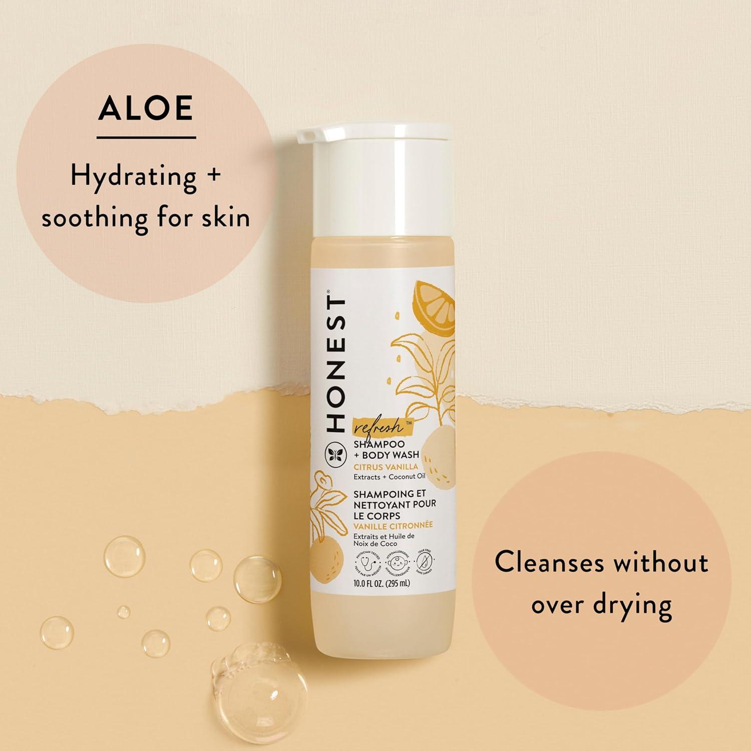 The Honest Company 2-in-1 Cleansing Shampoo + Body Wash and Face + Body Lotion Bundle + Disney Design | Gentle for Baby | Dermatologist Tested | Sensitive Fragrance Free, 18.5 fl oz(Citrus Vanilla Refresh)